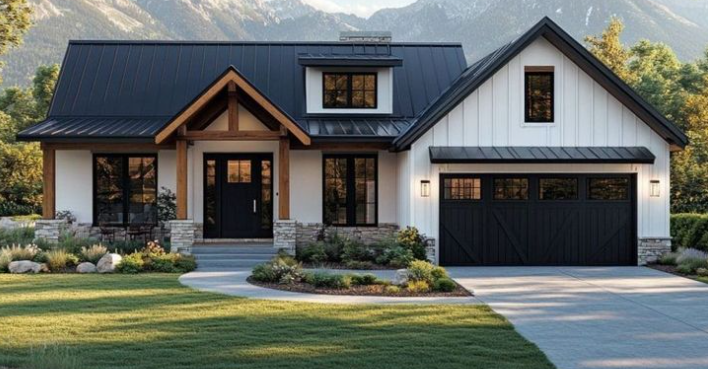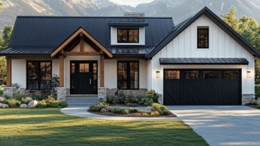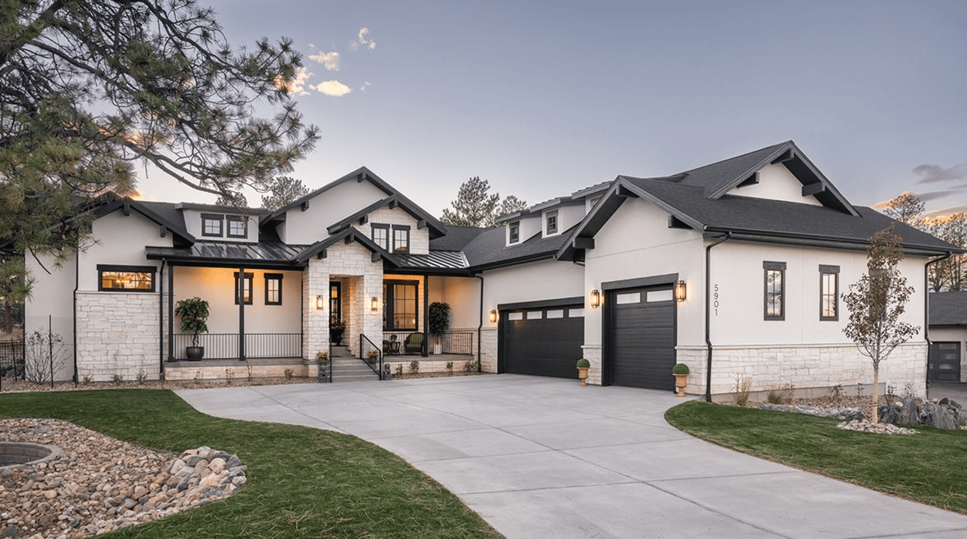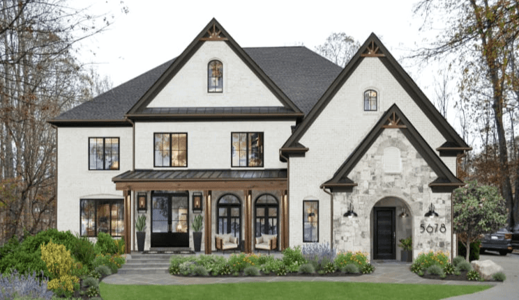Being very popular as of late, Farmhouse style is known for its gables, board-and-batten, big porches, light facades with black windows.
