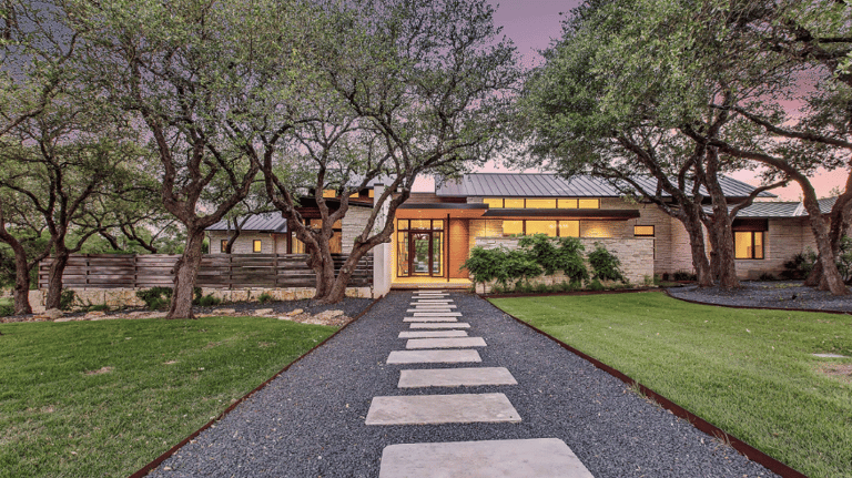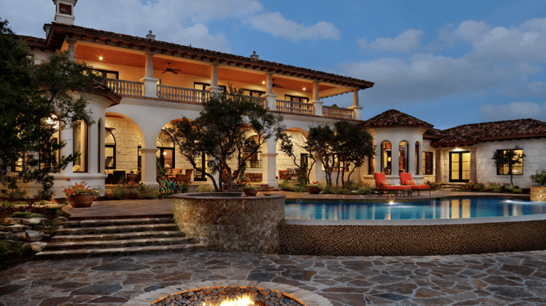 Perfect for Texas builds -- this style is a hybrid of modern and rustic materials with native limestone or sandstone + stucco or metal roofs, large windows, clean modern lines.